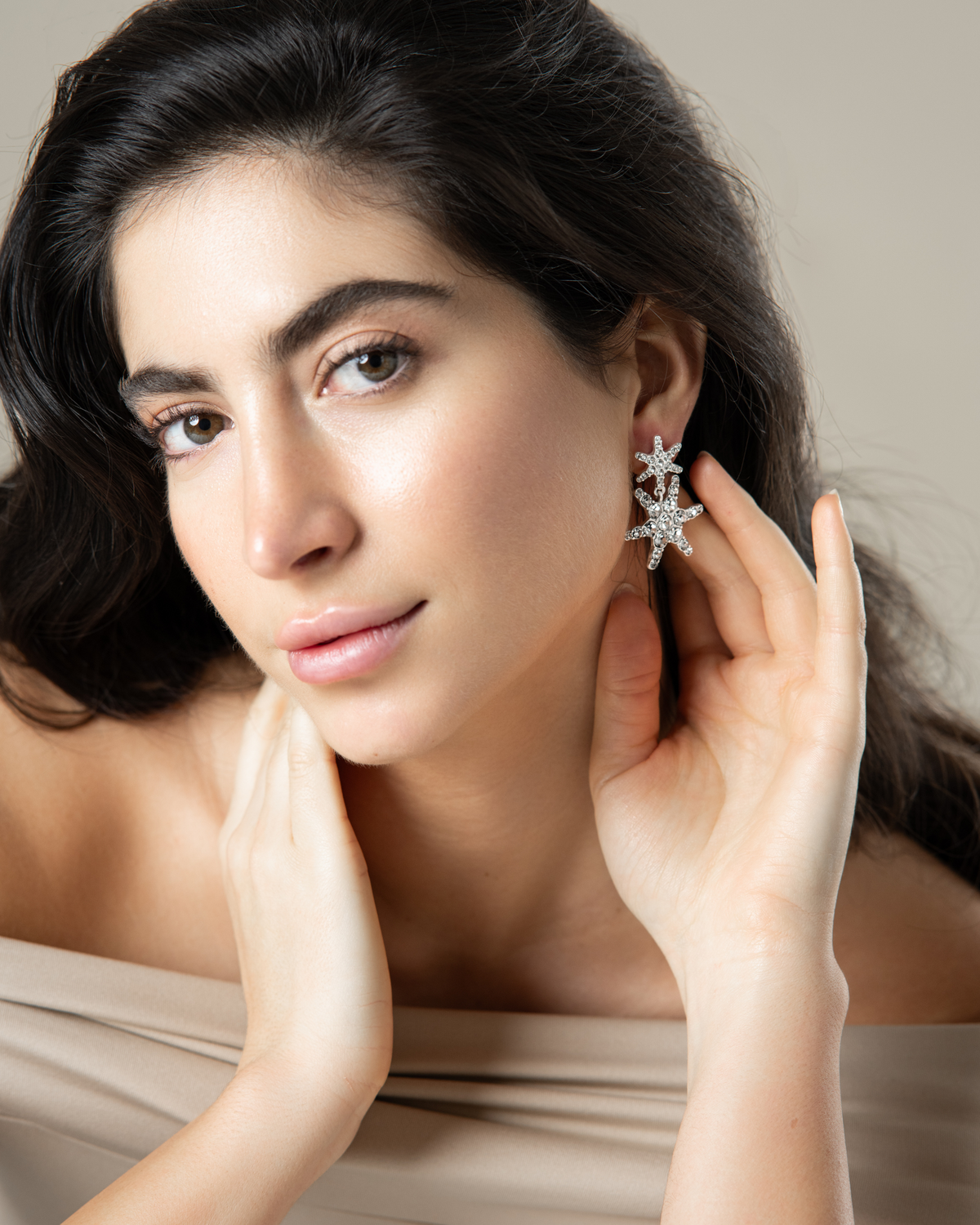 "Stella" - Versilberte Stern-Ohrringe mit funkelnden Kristallen