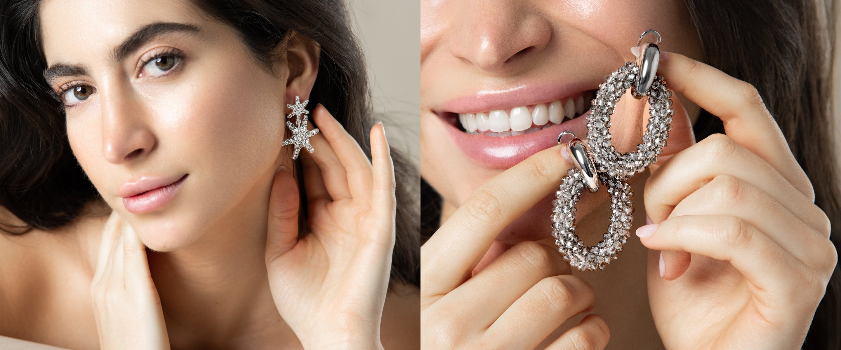 Cocktail @ Ciprian - Versilberte Creolen aus Kristallen Grau